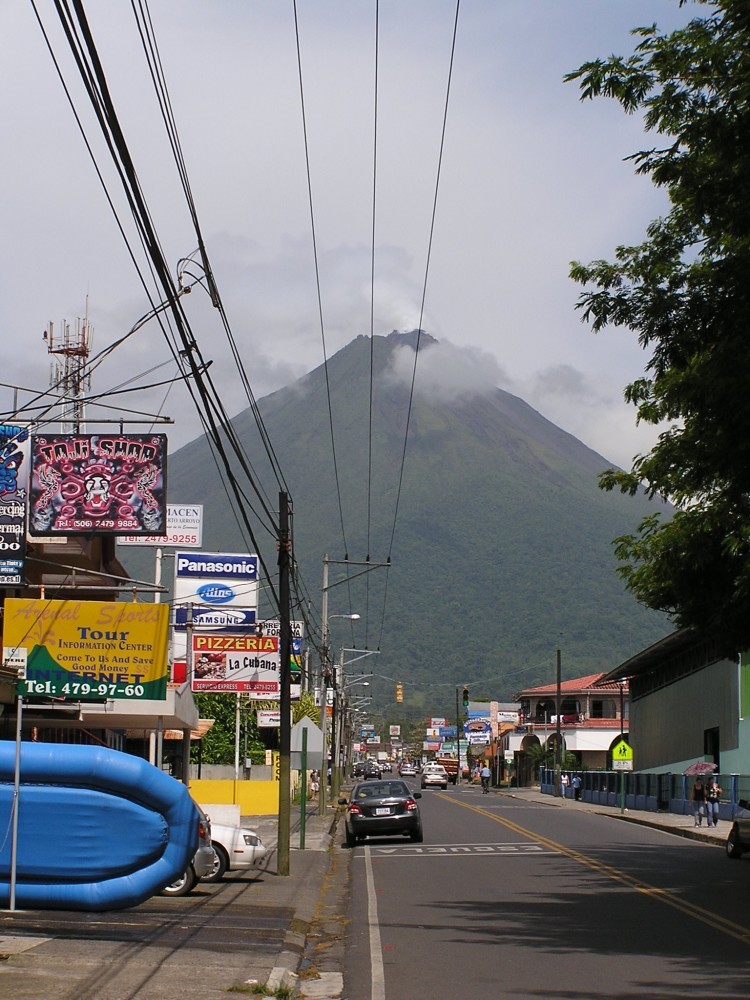 Unser Gepäck kam dann auch endlich am nächsten Tag und wir fuhren mit dem Bus nach La Fortuna zum Vulkan Arenal, dem aktivsten in Mittelamerika. Der letzte Ausbruch war 1968 und begrub 3 Dörfer unter sich. Ab und an muss mal jemand dran glauben, weil irgendwo eine heiße Gaswolke aus dem Boden sprüht.