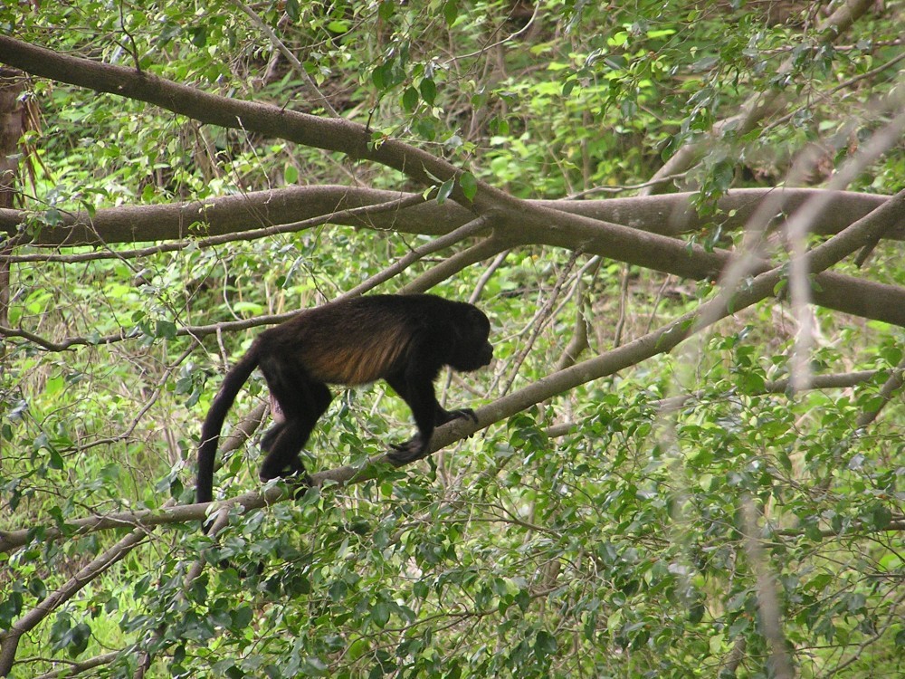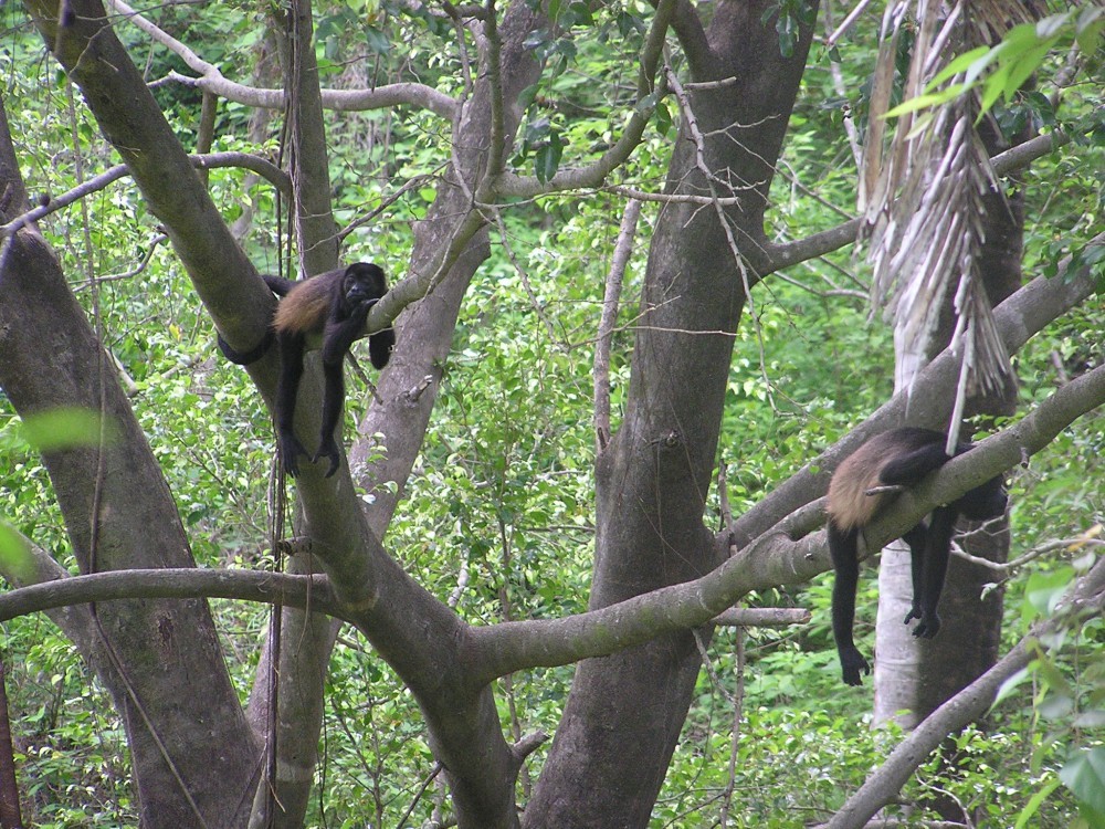Unser Leben wird in den letzten Tagen vom Gezeitenkalender bestimmt. Wann ist Flut, wann ist Ebbe, wann sind die besten Wellen zum Surfen? Wir sind an der Pazifikküste in Playa Guiones angekommen. Wir haben nicht den Weg ins angesagte und sehr touristische Tamarindo sondern ins eher einsame Playa Guiones gewählt. Hier wohnten wir im Solo Bueno Surf Hostel, bei Kimberly und Mateo. Die beiden sind aus den USA ausgewandert und haben ein Surf Hostel hier im Dschungel, 5 Minuten vom Strand entfernt aufgemacht. Da die Zimmer im Hostel wegen einer Käferplage gerade nicht verfügbar waren, haben wir hinter dem Haus gezeltet. Hier gibt es jede Menge Tiere zu bestaunen. Brüllaffen, Taranteln, Stinktiere, Schlangen, Hunde, Katzen und jede Menge mehr. Eines morgens wurden wir von einer Horde Affen geweckt, die direkt in den Bäumen über unserem Zelt ihren Familienzoff ausgetragen haben.