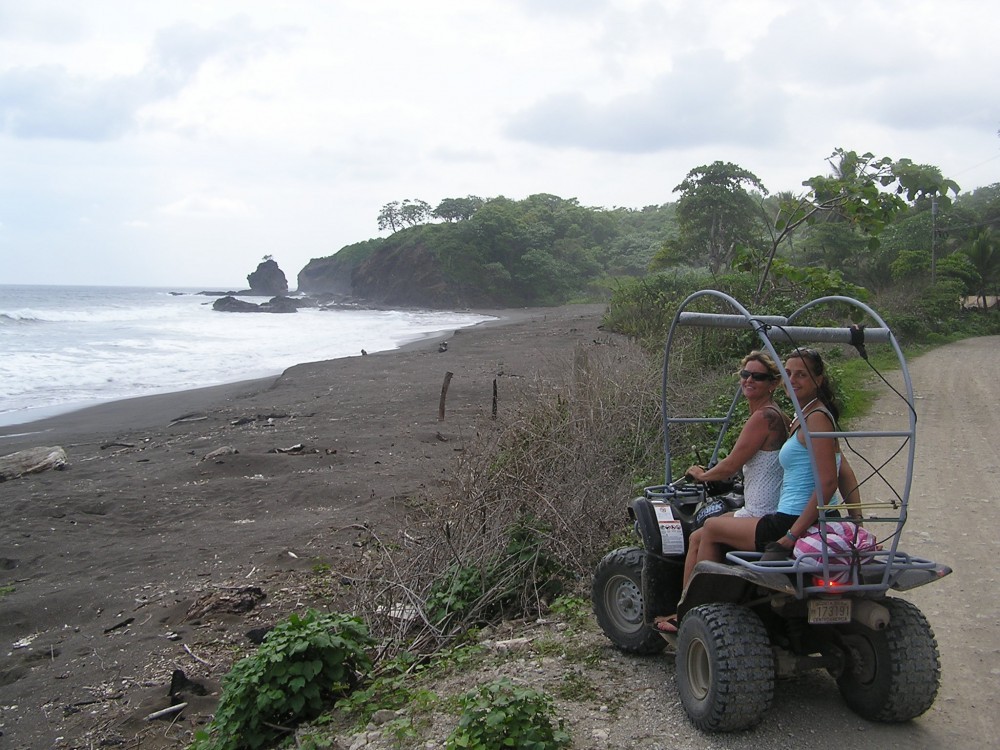 Wir nahmen uns auch endlich eine Surfstunde bei einem Einheimischen, die sehr hilfreich war. Unsere Technik hat sich sehr verbessert. Hier dreht sich das Leben nur ums Surfen. Aufstehen, schauen wie die Wellen sind, surfen oder frühstücken. Danach in der Hängematte liegen und wieder auf gute Wellen warten. Abends wieder Essen, schauen wann morgen Flut und Ebbe ist und pennen gehen. So sieht momentan unser Alltag aus. An unserem letzten Tag in Playa Guiones unternahmen wir eine Tour mit Kimberly und einem Freund von ihr zu verschiedenen Stränden. Die Mädels fuhren auf dem Quad und die Jungs im 4-Wheel-Jeep. An einem Strand fanden wir unzählige Schildkrötennester mit verlassenen Eierschalen. Sehen kann man die Schildkröten hier vorwiegend von November bis Februar, wenn sie zu tausenden an den Strand kommen und Eier vergraben.