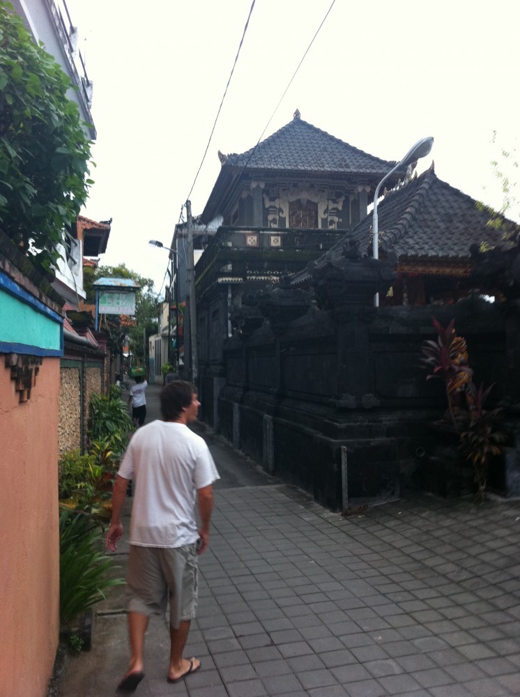 Nach 17 Stunden Flug sind wir endlich auf Bali gelandet. Das Wetter ist typisch subtropisch heiß und schwül. Wir fuhren mit dem Taxi zu unserem Treffpunkt in Kuta Beach wo wir Mark & Autumn trafen. Wir sind dann quasi direkt zum Surfshop und haben 2 Boards geliehen.