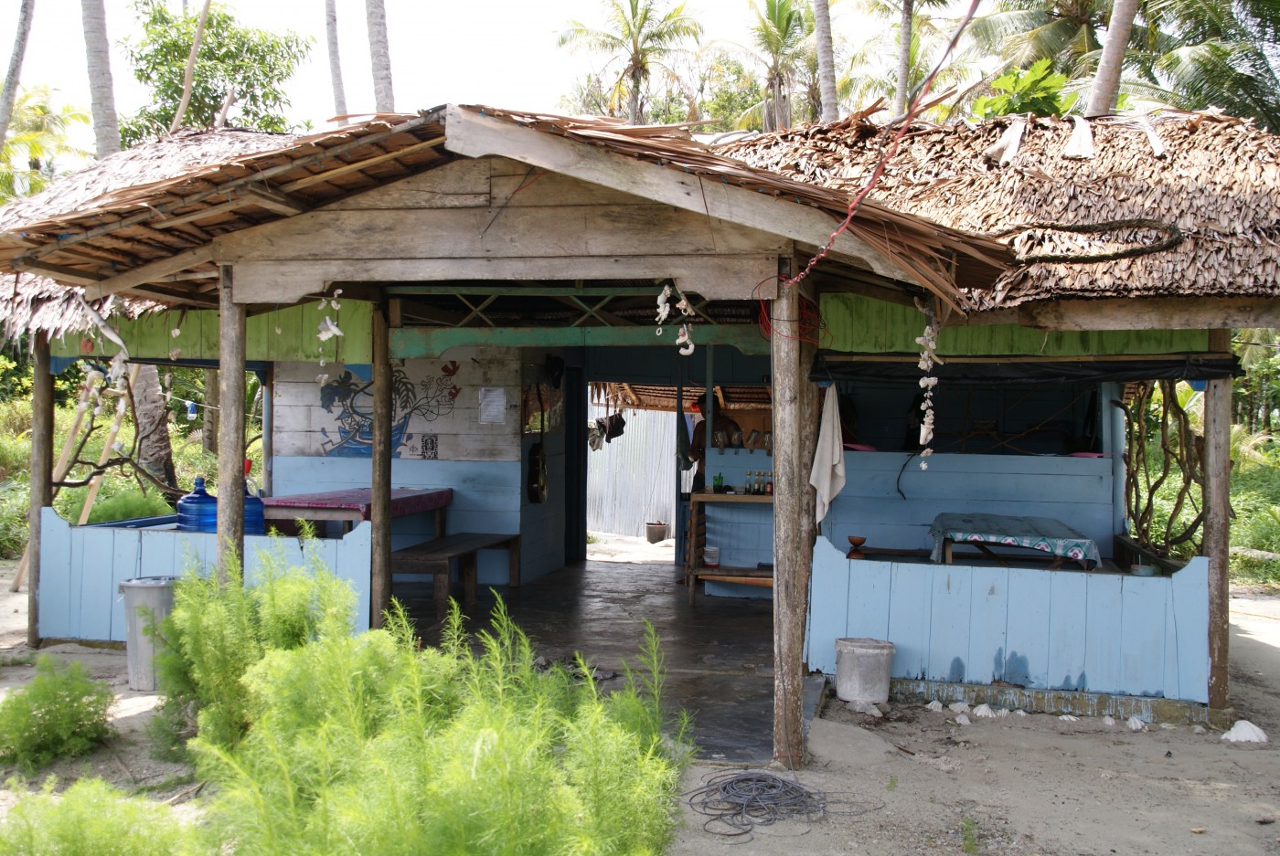 Tailana hat man in 15 Minuten zu Fuß umrundet, hier verbringt man die Tage mit Schnorcheln, Lesen in der Hängematte, Boottrips zu anderen Inseln oder Volleyball. Es gibt 5 Bungalows und ein kleines Haupthaus mit Küche und Sitzmöglichkeiten. Strom für die Küche liefert ein Solarpanel. Hinter der Küche gab es einen Brunnen der als Frischwasserquelle und zum Duschen diente. Duschen bedeutet einen Wassereimer aus dem Brunnen zu holen und ab damit über den Kopf. Die Bungalows selbst hatten keinen Strom, es waren einfache Holzhütten mit einer Matratze auf dem Boden und einer Öllampe für die Nacht. Zu erwähnen ist noch das Beach Volleyball Feld inklusive Solarlampe, damit Vicki auch noch im Dunkeln spielen konnte. „Betrieben“ wird die Insel von zwei netten Typen namens Daswan und Herrmann. Sie kümmern sich um die Gäste, Kochen was eben so da ist, Singen und spielen Gitarre und klettern auf Wunsch auf eine Palme und besorgen frische Kokosnüsse zum Trinken.