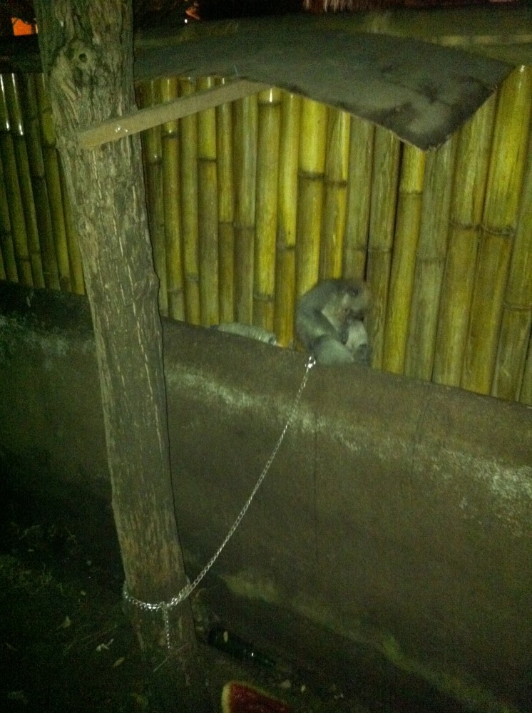 Das Traurigste an Asien ist der Umgang mit den Tieren. Es gibt z.B. immer wieder kleine Äffchen die an einer 1m kurzen Leine festgebunden sind. Sie sollen vor einem Laden Touristen anlocken. Irgendwann ketten wir den Besitzer daneben an.