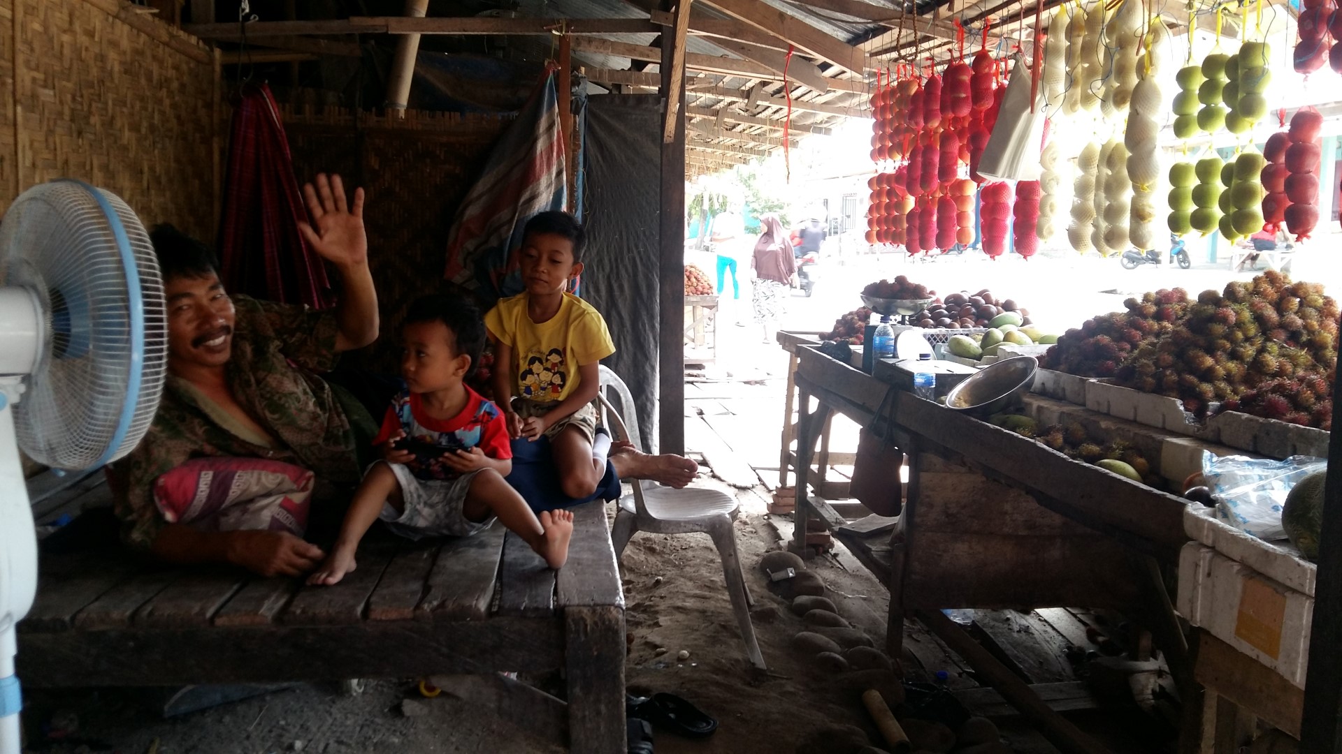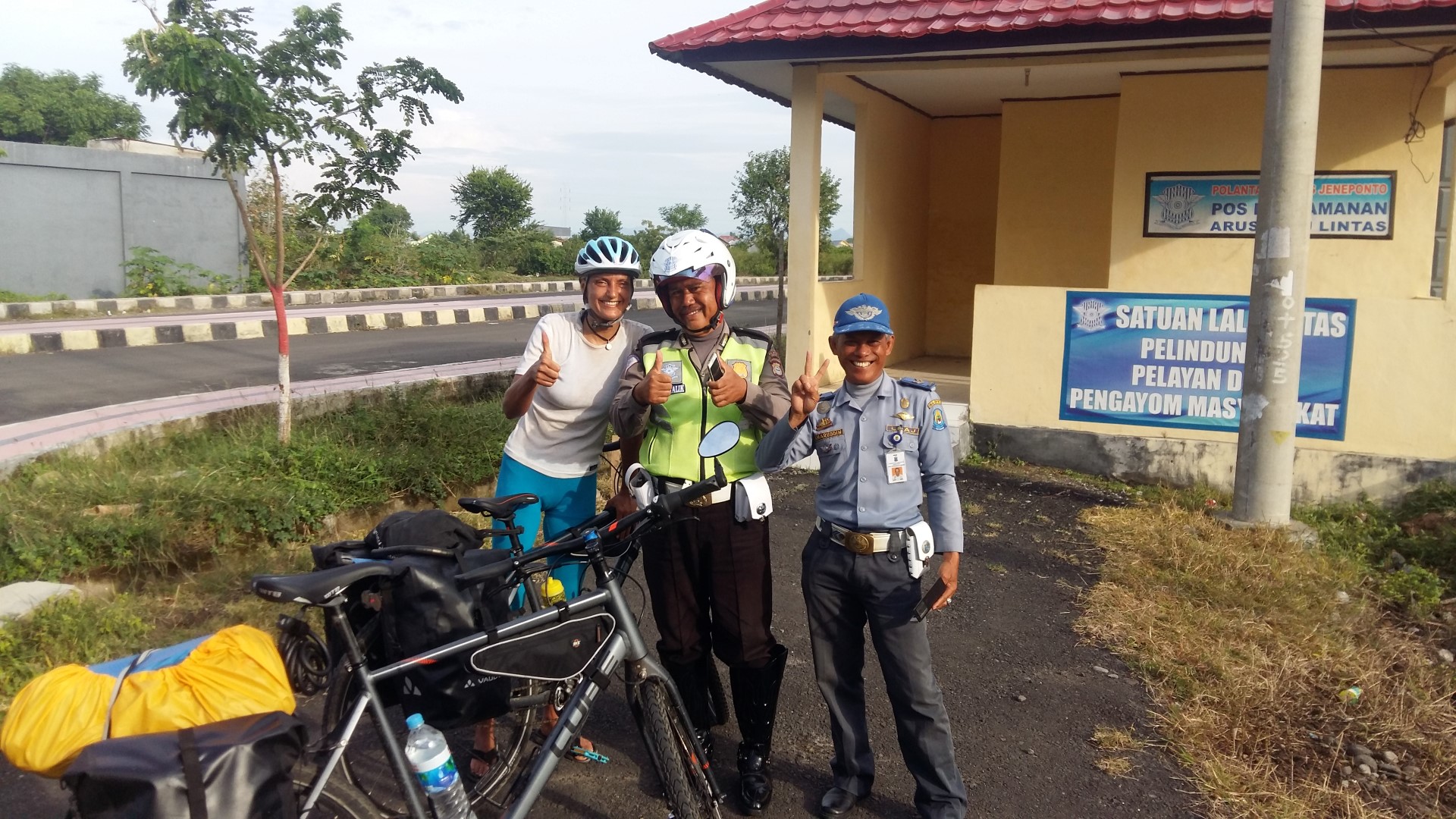 Die Bewohner von Sulawesi sind ausgesprochen nett. Fährt man mit dem Rad, hört man jede Minute „Hello Mister“ (nicht gelogen, JEDE MINUTE!) und sieht winkende Hände. Jeder möchte ein Foto machen und unserer Gesichter zieren nach zwei Tagen bereits 50 Fotoalben. Selbst die Polizei hat uns gestoppt, bloß um ein Foto mit uns zu machen. Leider sprechen wir sehr wenig Indonesisch und hier spricht auch niemand Englisch, was die Suche nach einer Unterkunft oder vegetarischem Essen nicht einfacher macht. Der Google Übersetzer ist ständiger Begleiter.