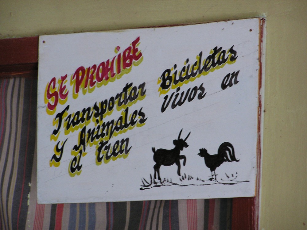 Wir standen also wie empfohlen um 8:00 Uhr am Bahnhof wo der Hershey abfahren sollte. Natürlich tat er dies nicht, sondern viel aus. Der nächste sollte um 12:30 Uhr fahren. Wir schauten uns dann nochmal in der Stadt um und tatsächlich, vier Stunden später stand ein uralter Elektro-Zug mit drei Wagons da. Die Sitze waren eine Stahl-Holz-Konstruktion, die Türen während der Fahrt offen und einige Scheiben zerschlagen. Dafür kostet die Fahrt nach Havanna für Touristen auch nur 2,80 CUC. Einheimische bezahlen 2,80 Peso Cubano, was etwa ein 25stel von unserem Fahrpreis ist.