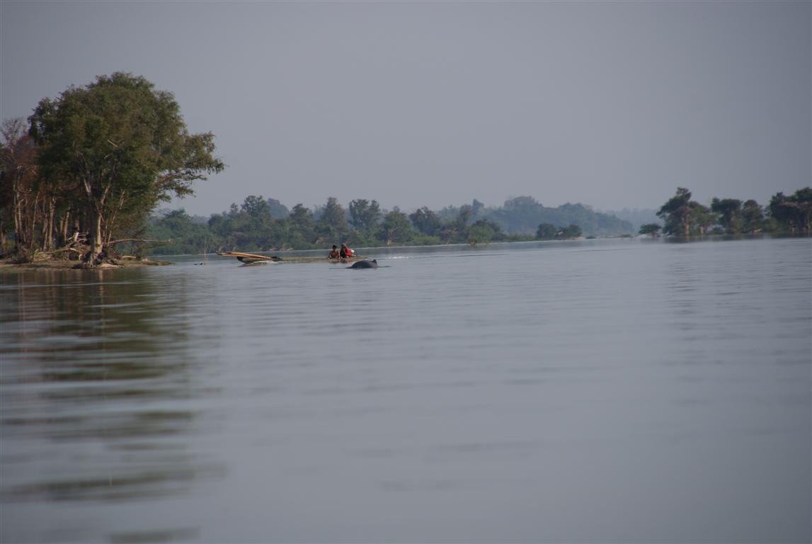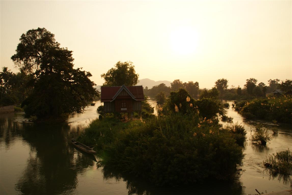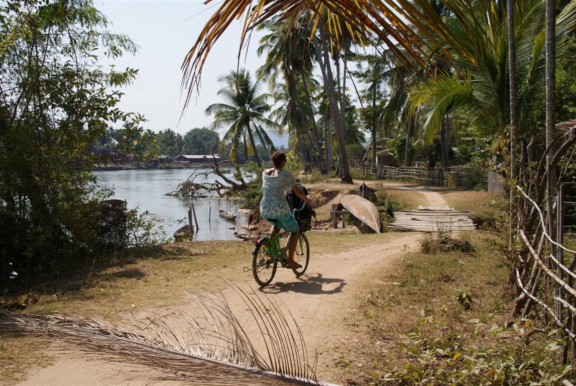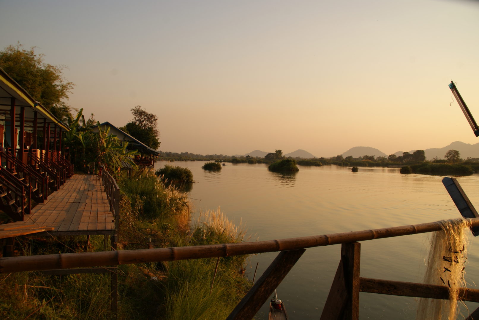 Wir lagen in der Hängematte, fuhren mit den Rädern umher, schauten uns Wasserfälle an oder genossen den Sonnenuntergang. An einem Tag fuhren wir mit Boot hinüber auf die Kambodschanische Seite des Flusses und konnten dort die seltenen Irawadi Delfine beobachten. Nach ca. 30 Minuten tauchte eine Grenzkontrolle per Boot auf und wir mussten wieder auf die laotische Seite zurück, die Delfine blieben leider drüben. Es war super, genau was wir nach den anstrengenden Tagen im Bus brauchten.