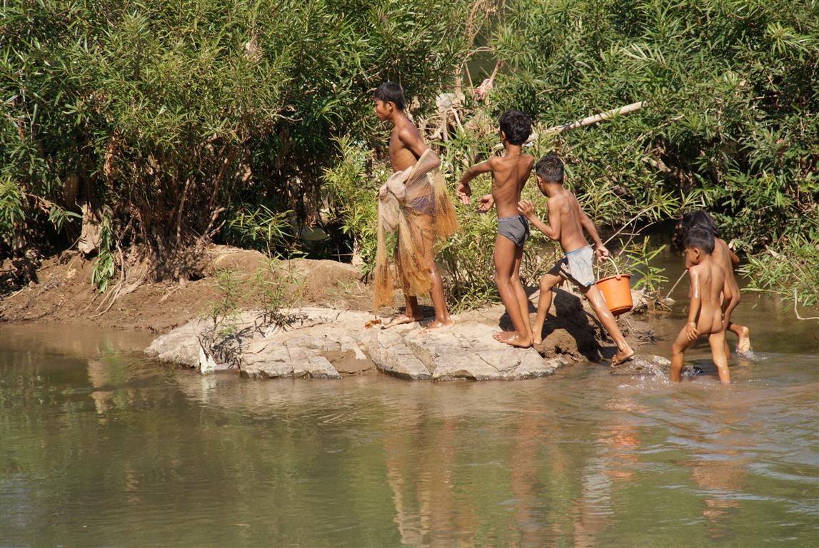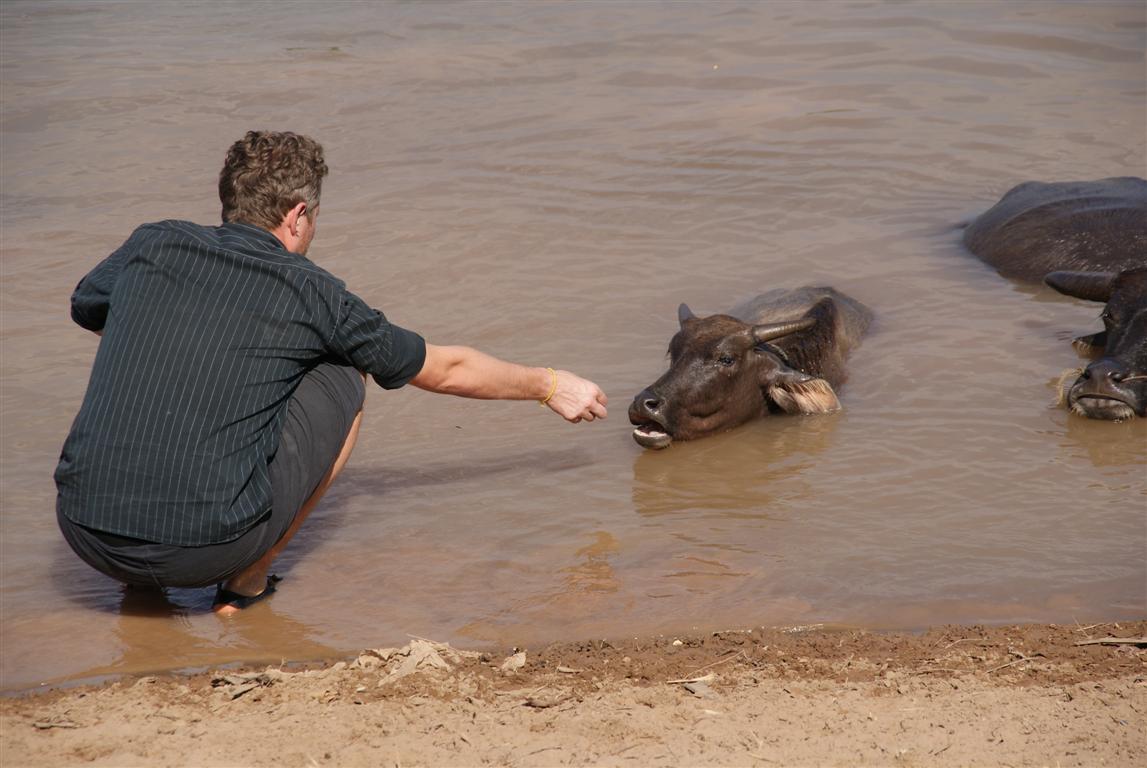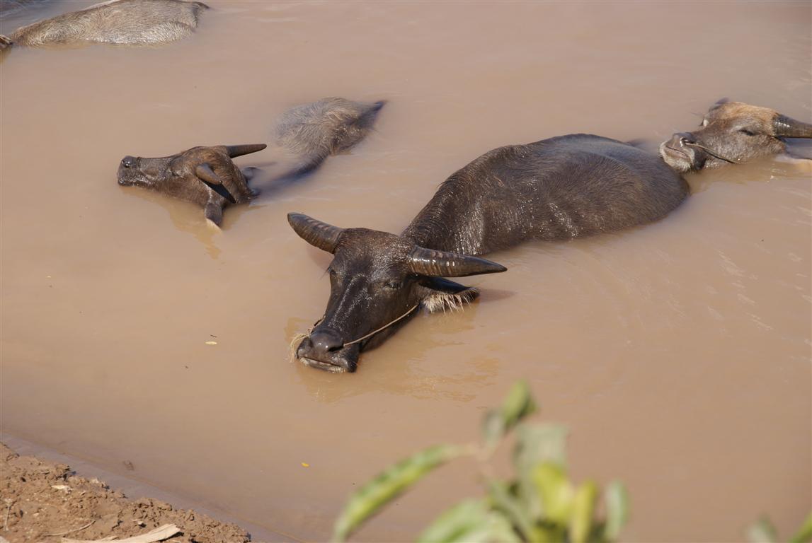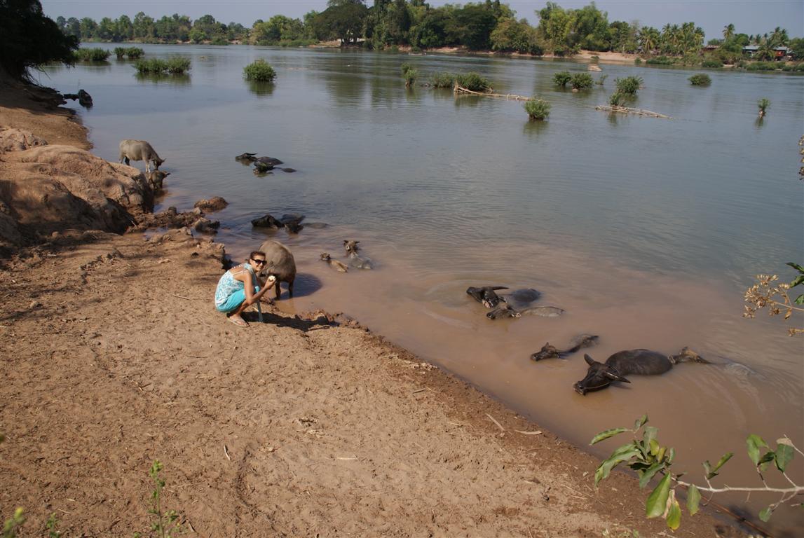 Hier in Laos ticken die Uhren gleich zwei Takte langsamer, alle Leute sind freundlich und unglaublich gechillt, einfach laotisch. Auf der Insel gibt es nur ein paar Pfade, keine Autos nur Fahrräder. Man trifft auf Wasserbüffel die am Wegesrand grasen oder mit den Menschen im Mekong baden. Die Menschen haben hier keine Duschen oder Waschmaschinen, man wäscht sich und alles andere im Mekong. So taten wir es auch und gingen jeden Tag Baden.