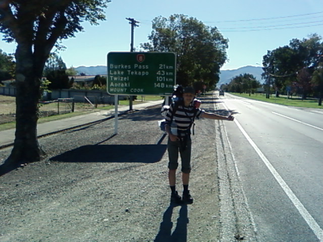 Wir sind vor 4 Tagen in Timaru gestartet. Unser Ziel ist vorerst Queenstown. Auf dem Weg dorthin befinden wir uns nun in Wanaka am Lake Wanaka wo wir ein paar Tage rasten wollen. Wir sind die ganze Strecke bis hier hin ohne laengere Wartezeiten getrampt (ca. 250km). Am Lake Tekapo haben wir 2 naechte gezeltet und geangelt. Leider kennen die Forellen und Lachse hier in der gegend jeden Trick und wollen einfach nicht an unseren Hacken. Wir spekulieren, dass es in Neu Seeland gar keine Fische gibt. Heute versuchen wir erneut unser Glueck im Lake Wanaka. Die letzte Nacht verbrachten wir in einer Jugendherberge, da Steven sich eine kleine Grippe eingefangen hat und wir endlich mal in Ruhe und Waerme durchschlafen wollten. Auf dem Weg hier her haben uns wieder viele nette und strange Leute mitgenommen. Ein altes Ehepaerchen hat uns in Fairlie zu sich nach Hause auf einen Kaffee eingeladen. Die Neu Seelaender sind unverschaemt nett. Wenn sie aus dem Bus aussteigen, bedanken sie sich beim Fahrer, dass dieser an der Haltestelle gehalten hat. Selbst ein Autofahrer hat sich bei uns bedankt, als er uns ein Stueck mitgenommen hat. Auf dem Weg vom Lake Tekapo nach Wanaka kamen wir am Lake Pikaku vorbei. Der hat derart hellblaues Wasser, dass man annimmt, da hat einer Chemie rein gekippt. Es kommt wohl von irgendwelchen Mineralien im Wasser. Hier gibt es wirklich viele Seen! Von einer einsamen Strasse hat uns eine andere Familie nach Wanaka mitgenommen. Wir sassen zu viert hinten drin und der Betrunkene (aber nette) Vater hat uns staendig Marihuana angeboten. Letztendlich konnte er uns mit einem Bierchen zufrieden stellen. Wir werden nun eine Zeit hier in Wanaka verbringen und melden uns wieder in Queenstown. Bis dahin, Vicki und der Kranke.