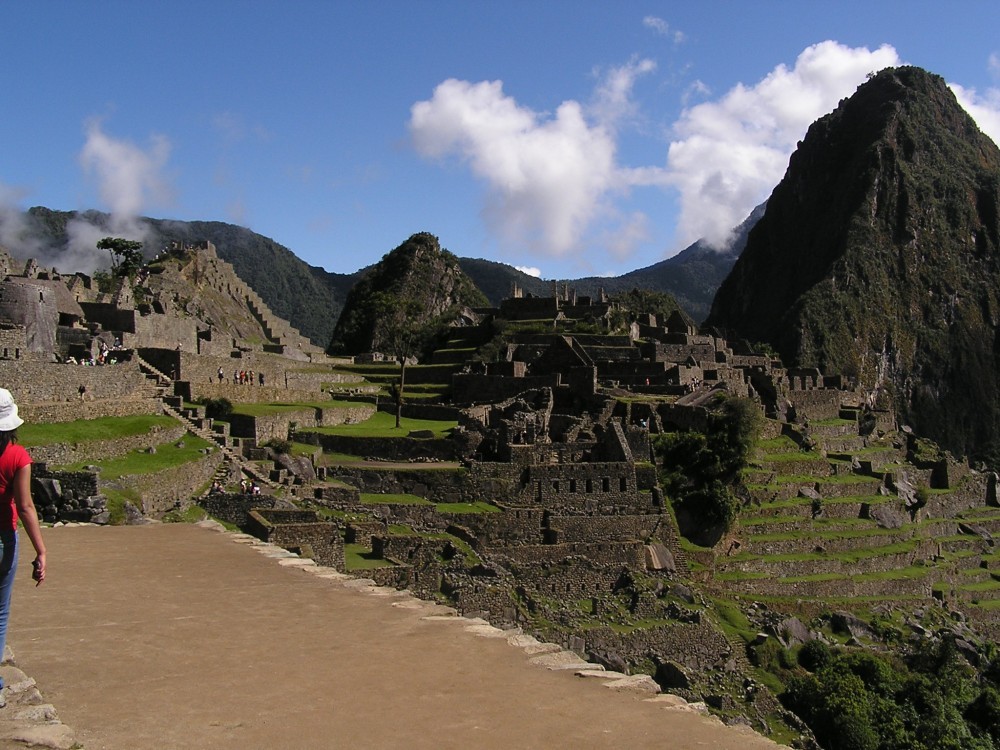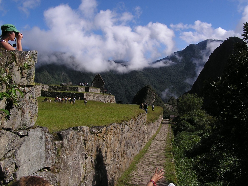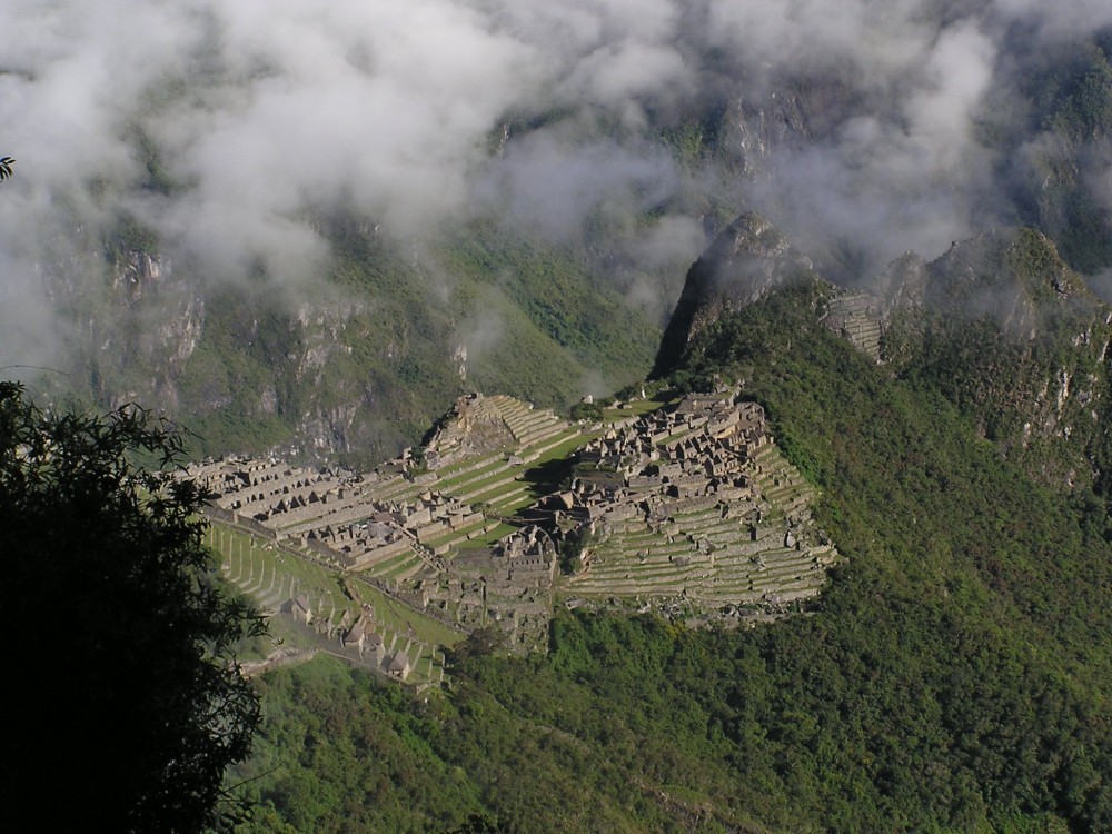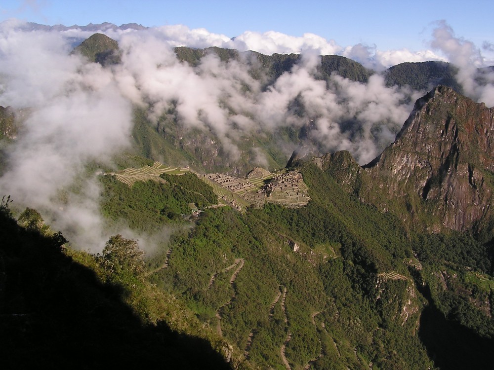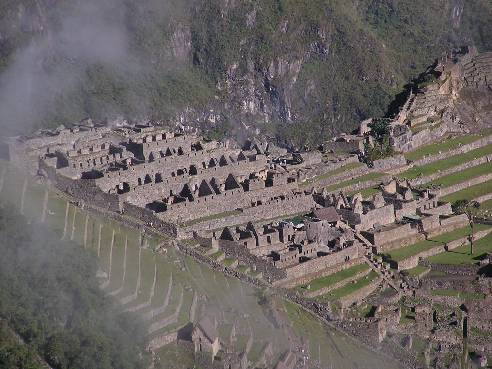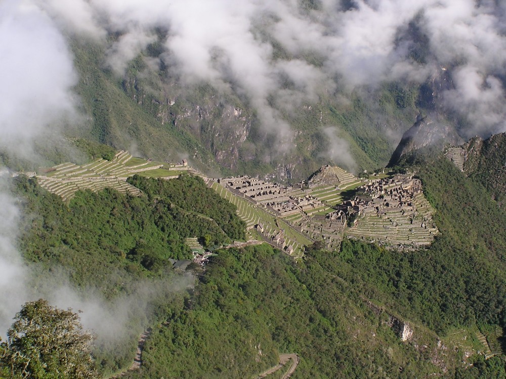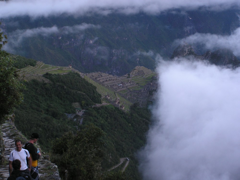 Als wir dann am Sonnentor ankamen, erblickten wir die sagenumwobene Inkastadt. Sie verbarg sich noch ein wenig in den Wolken, es klarte dann aber schnell auf. Intipunku lag auf ca. 2800m Höhe und nach Machu Picchu, welches auf 2500m liegt waren es noch etwa 2 Kilometer. Wir blieben von allen Touristen am längsten an diesem Ort und genossen den Blick auf die Stadt.