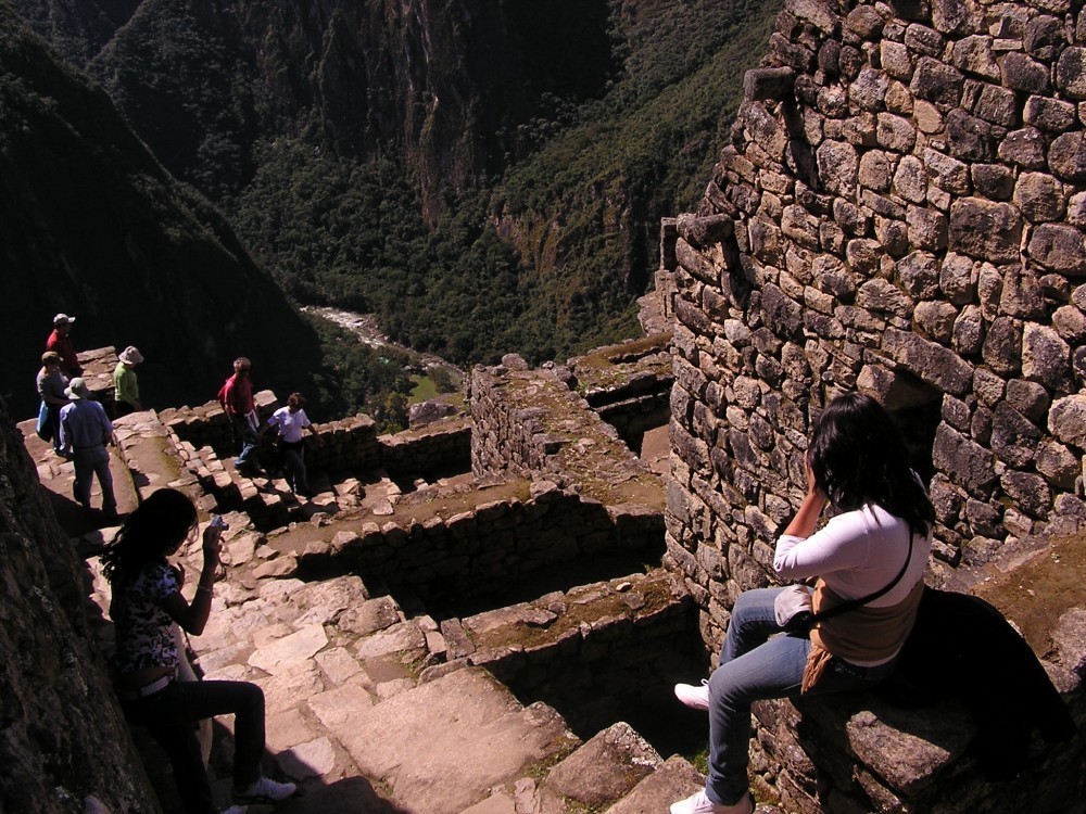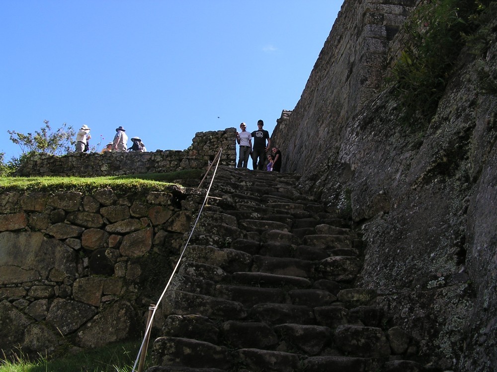 Steven bekam es hier nun leider mit der Höhenangst zu tun. Der klare Blick in die Schluchten auf beiden Seiten machten Ihm zu schaffen. Nach einigen Versuchen gelang es dann mit Hilfe unseres Guides Naty die schwierigen Stellen zu passieren und wir kamen erschöpft und überwältigt in Machu Picchu an.