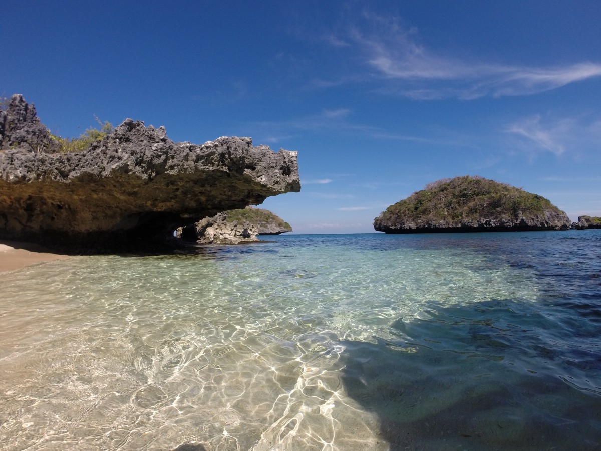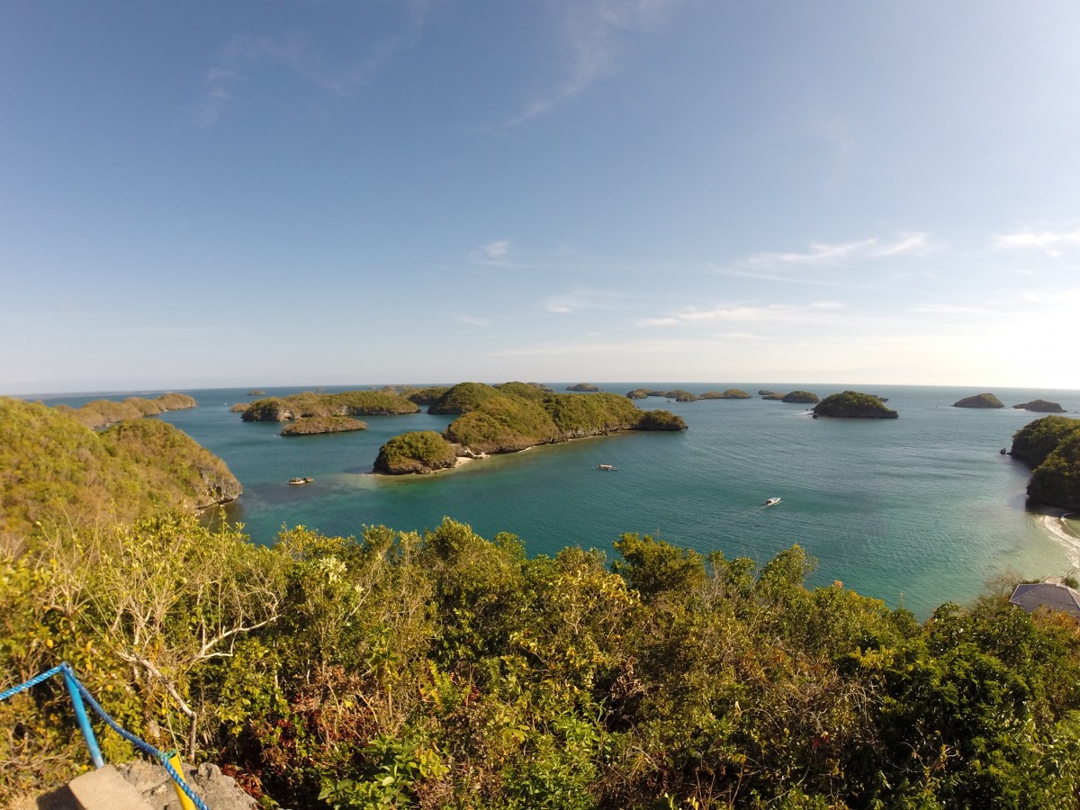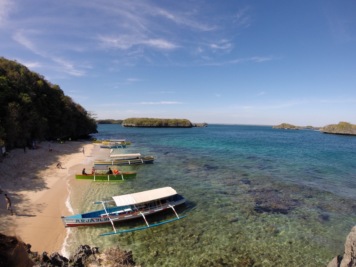 Unser letztes Ziel vor der Rückreise nach Manila war der Hundred Island Nationalpark. Der Hafenort, von dem man die Boots-Tour zu den hundert Inseln unternimmt, war nicht sehr einladend, weshalb wir auch nur eine Nacht blieben. Wir fuhren mit einem kleinen Boot und einem nicht so richtig motivierten Guide hinaus zu den Inseln und besichtigten einige davon. Die Highlights waren ein Aussichtspunkt, einige kleine weiße Sandstrände, ein Jumping-Point in einer Fledermaus-Grotte und ein Schnorchel-Spot. Alles in allem war der Park nicht sooo spektakulär, dass Schnorcheln war aber ganz gut, wir hatten teilweise nur nicht so klare Sicht, da die See etwas rauer war. Leider meinte unser Guide, es gäbe nur einen Schnorchel-Spot, obwohl wir mehrfach betonten, dass Schnorcheln unser Hauptaugenmerk sei und wir hofften er zeige uns ein paar mehr gute Stellen. Wir fanden dann noch von selbst eine gute Stelle, als wir den Besucherstrand einer kleinen Insel verließen und etwas um eine Ecke schwammen.