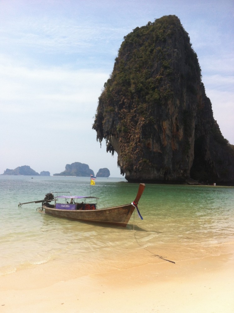 Unsere letzten Tage in Thailand verbrachten wir in Krabi, auf Koh Phangan und Koh Tao. In Krabi machten wir einen Tagesausflug nach Rayley Beach welcher zwar am Festland liegt jedoch von hohen Kalkfelsen umgeben ist und somit nur per Boot erreichbar. Der Strand selbst war sehr überlaufen und auch nicht so schön, der Reiz liegt hier mehr im Klettern direkt am Strand. Über 600 Kletterrouten soll es hier geben.