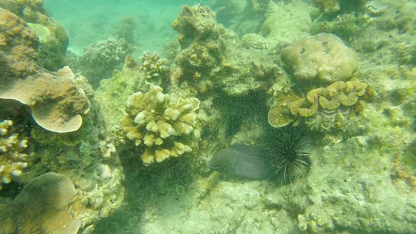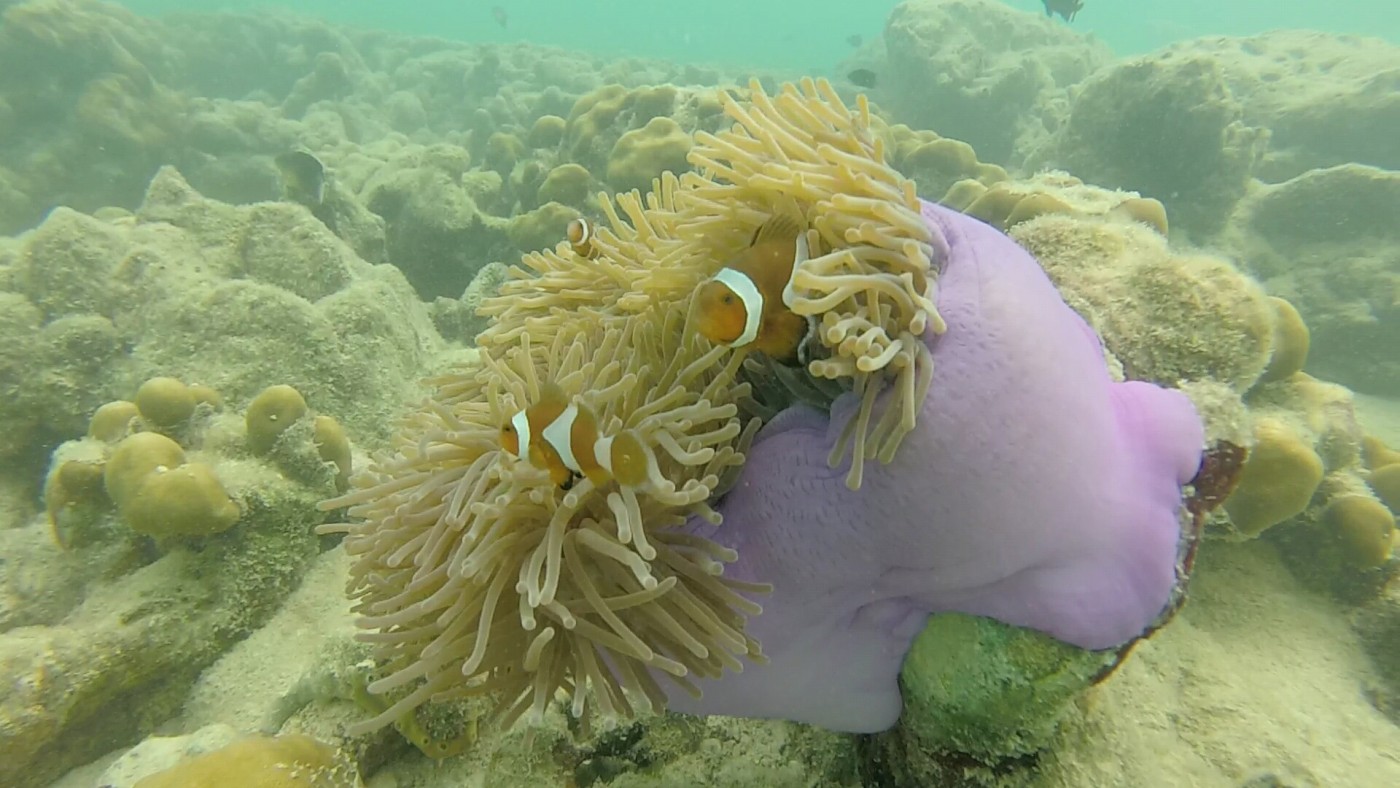 Auf Koh Ngai gibt es außer Baden und Schnorcheln nichts zu tun. Dies taten wir dann auch zwei Tage lang, vor unserem Zelt und auf der anderen Seite der Insel. Dafür musste ein 20 Minütiger Dschungelpfad über den Inselnberg überwunden werden. Der Schnorchelspot auf der anderen Seite, am unbewohnten Strand war natürlich etwas besser. Wir sahen drei Muränen, einige Anemonenfische und Korallen. Alles in allem ist das Riff nicht mehr sehr intakt, die meisten Steinkorallen sind abgestorben. Dafür hatten wir die Bucht aber quasi für uns allein, weshalb es trotzdem sehr schön war.