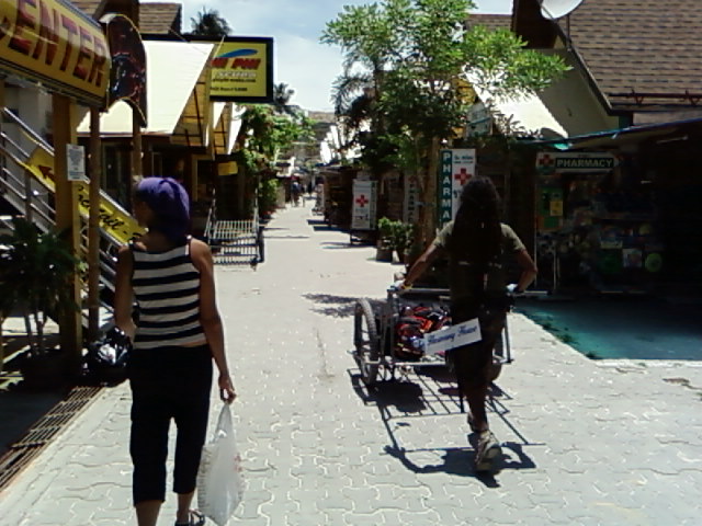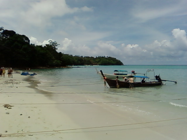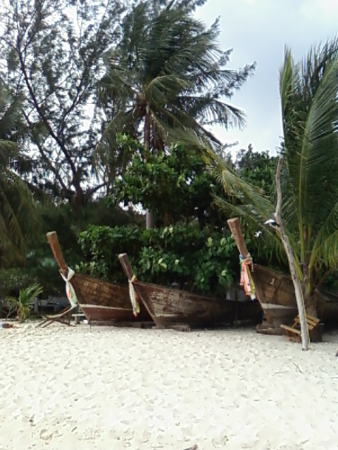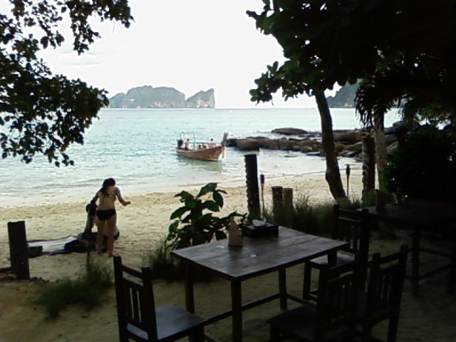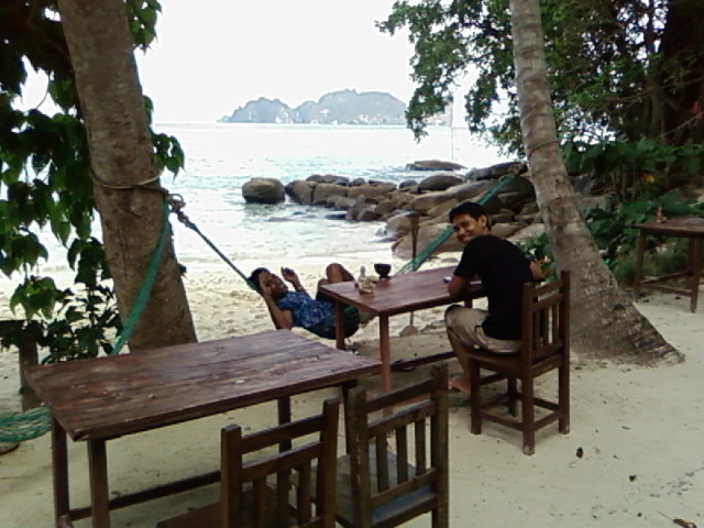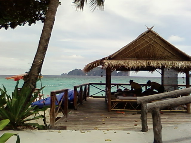 Eine original Thai Massage. 1 Stunde = 5 Euro = herrlich entspannend! An einem weiteren Abend gingen wir ins Dorf Essen. Den Hinweg konnten wir bei Ebbe am Strand entlang gehen, beim Rueckweg war leider Flut. Wir mussten mitten in der Nacht ohne Licht ca. 20 Minuten durch den Dschungel tapsen. Das war ein Erlebnis! Zureuck am Bungalow ging es erst einmal in die Haengematte am Strand. Ko Phi Phi hat seine schoenen Seiten, ist jedoch nicht so schoen wie die Perhentian Islands in Malaysia. Dafuer ist Phi Phi viel zu touristisch. Die Insel und ihre Bewohner hatten auch unter dem Tsunami von 2004 zu leiden. Er riss 200 Bungalows und etliche Menschen mit sich. Der Wiederaufbau ist fast abgeschlossen, hier und da gibt es aber noch ein paar Baustellen. Nun sind wir wieder in Krabi und werden uns morgen auf den Weg in den Khoa Sok Nationalpark machen um dort eine Dschungel-Trekking-Tour zu bestreiten. Dort kann man frei lebende Elefanten, Tiger und noch so allerlei bestaunen. Bis dahin, die Pipis.
