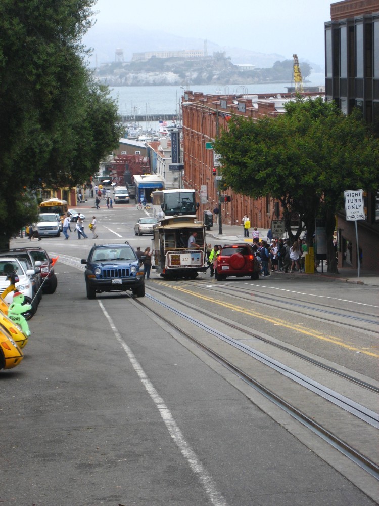 Am nächsten Tag erreichten wir San Francisco. Die Stadt ist wirklich schön, es gibt alternative Viertel und viele schöne alte Häuser an steilen Straßen. Wir besuchten den Hafen mit Blick auf Alcatraz sowie die Haightstreet, in der die „Hippierevolution“ stattfand und natürlich die Golden Gate Bridge. Zwischendurch kamen wir noch an der wohl steilsten Straße der Welt (27%) vorbei. San Francisco war ein echtes Highlight.