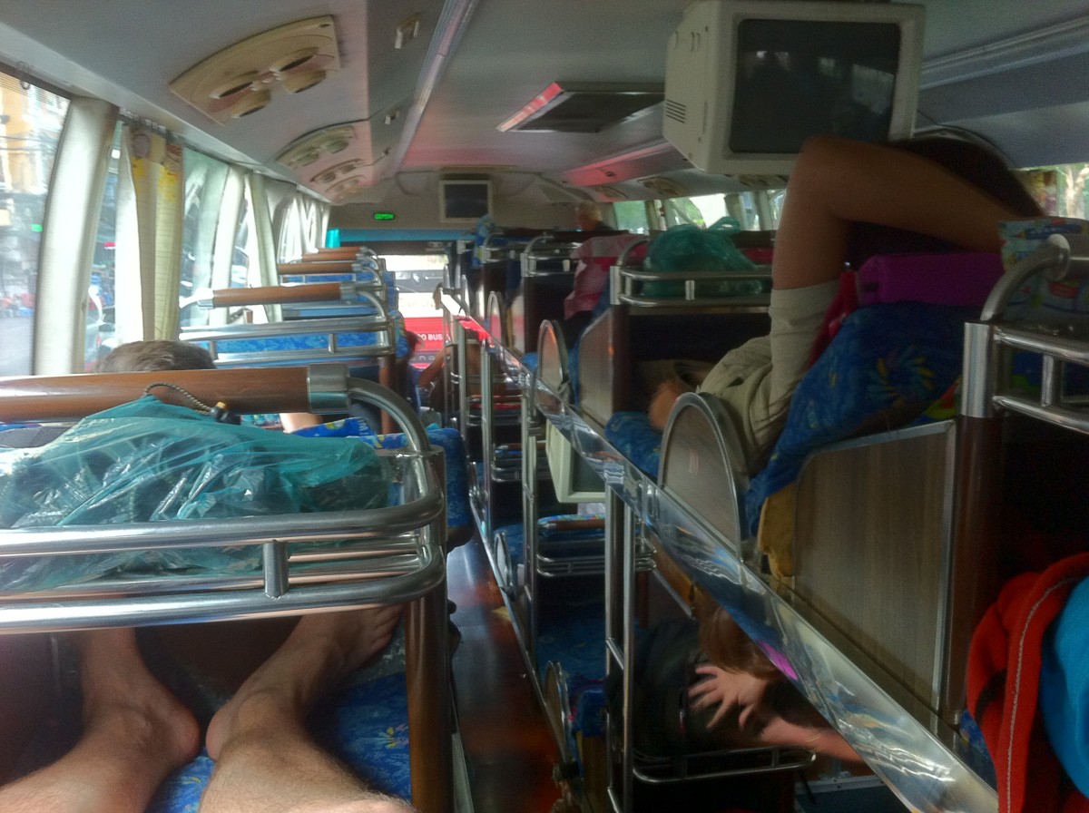 Nach unserer schönen Zeit in Cambodia nahmen wir den Nachtbus nach Ho-Chi-Minh Stadt (Saigon). Gegen Mitternacht mussten wir in Phnom Penh umsteigen und aus dem versprochenen Nachtbus wurde ein abwrackreifer Bus mit normalen Sitzen. Die Fahrt dauerte 14 Stunden und führte bis zur Grenze über Schotterpisten.